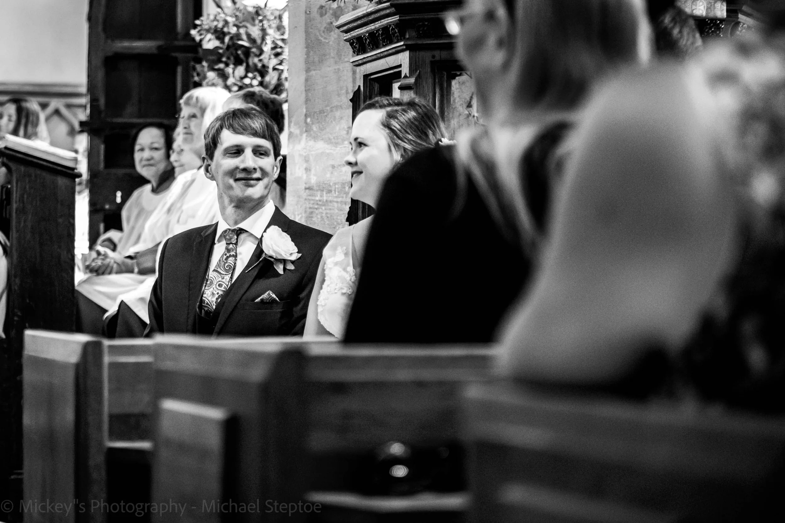 Guests gathered inside the historic All Saints Church in Didcot, eagerly awaiting Barbara’s arrival. Peter stood at the front of the church, full of anticipation as he prepared to see his bride for the first time.